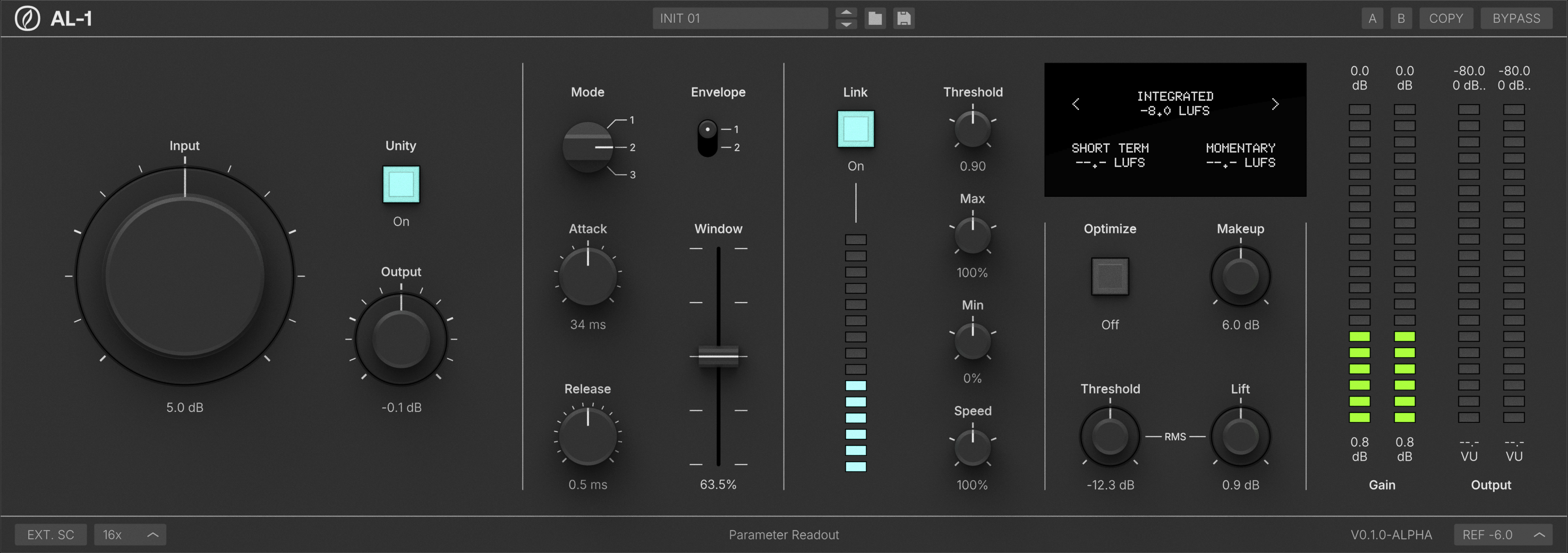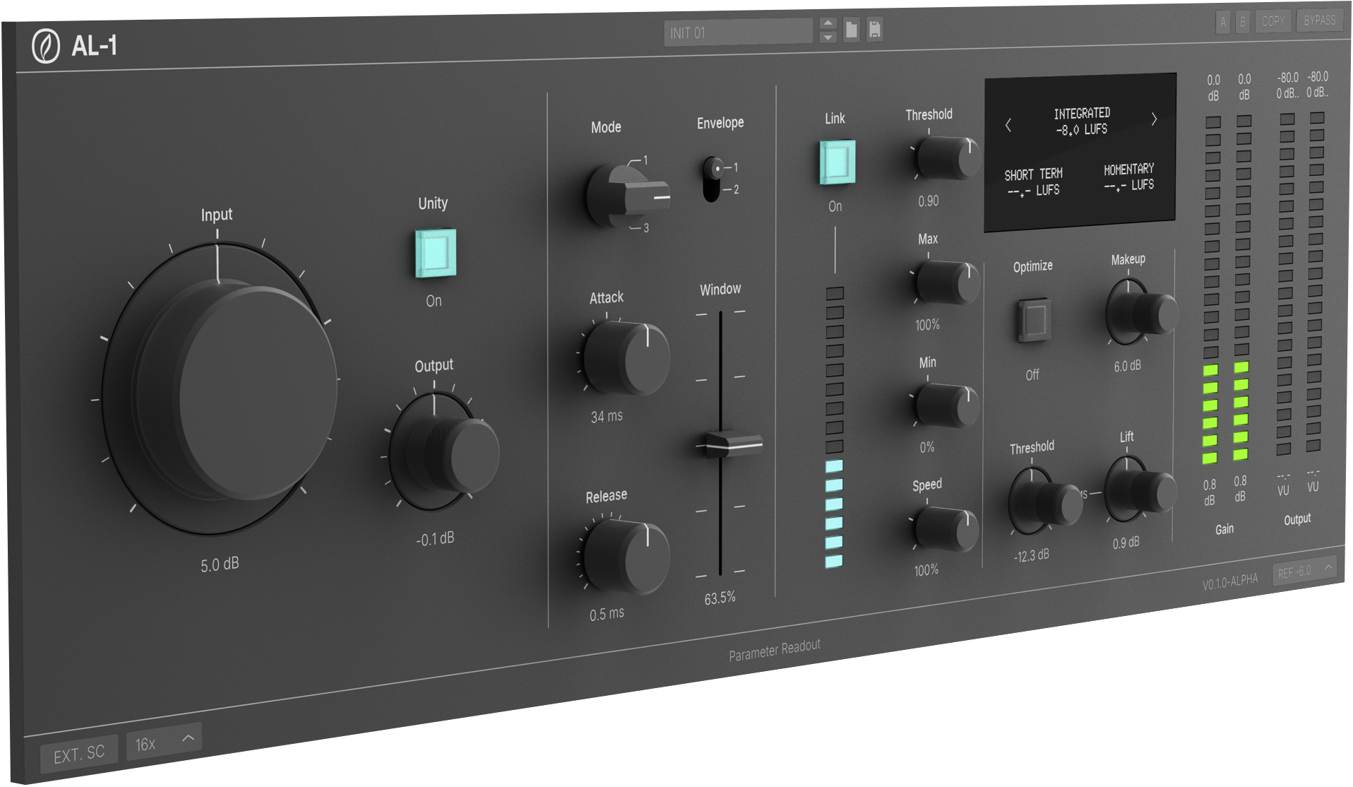 The AL-1 utilizes a new strategy to retroactively reshape samples around peaks for greater fidelity under pressure. Retain more low end and transients keeping attacks clear and releases natural.